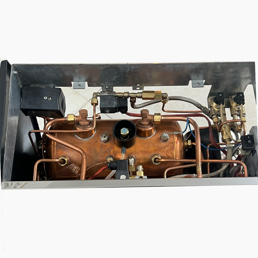 بویلر مسی صنعتی قلب این اسپرسوساز را تشکیل میدهد. این بویلر دمای آب را ثابت نگه میدارد و شرایط ایدهآل عصارهگیری را فراهم میکند. باریستا با این ثبات دما، طعم یکنواخت قهوه را در هر شات تجربه میکند.
